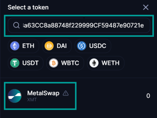 Enter the XMT contract in the box and select MetalSwap