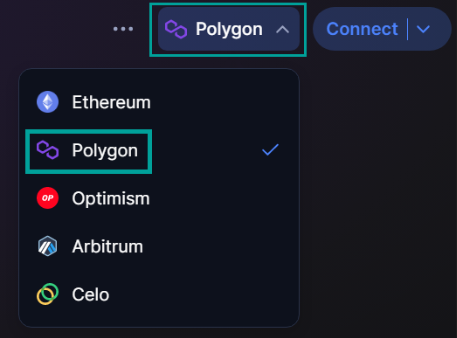 In case the network settled on the wallet is not Polygon Chain, a hint window will appear asking you to click on "Change Network".