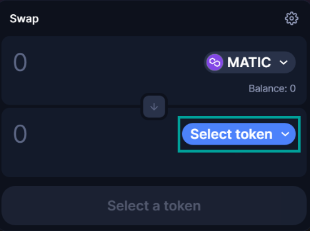 By Clicking on the arrow next to each of the tokens, will be shown a list of tokens to choose from, but to avoid mistakes or scams we recommend to always enter the smart contract of the token wanted in the window provided.