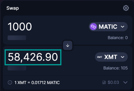 Now the platform is ready to exchange any amount of MATIC, or other token chosen, for the equivalent in XMT.