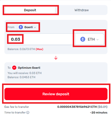 Check all the information insert, click on Deposit and pay the transaction fees to complete the token transfer operation. You can monitor the transaction using the provided Etherscan link. Once the bridge is complete, you will see the funds in your Optimism account.