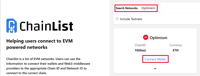 Find the Optimism Box, or search for it using the 'Search Networks' section at the top of the page and select it.