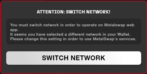 Click on 'Switch Network' and confirm to switch to the correct network.