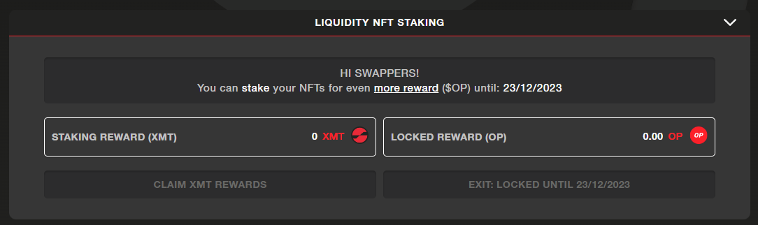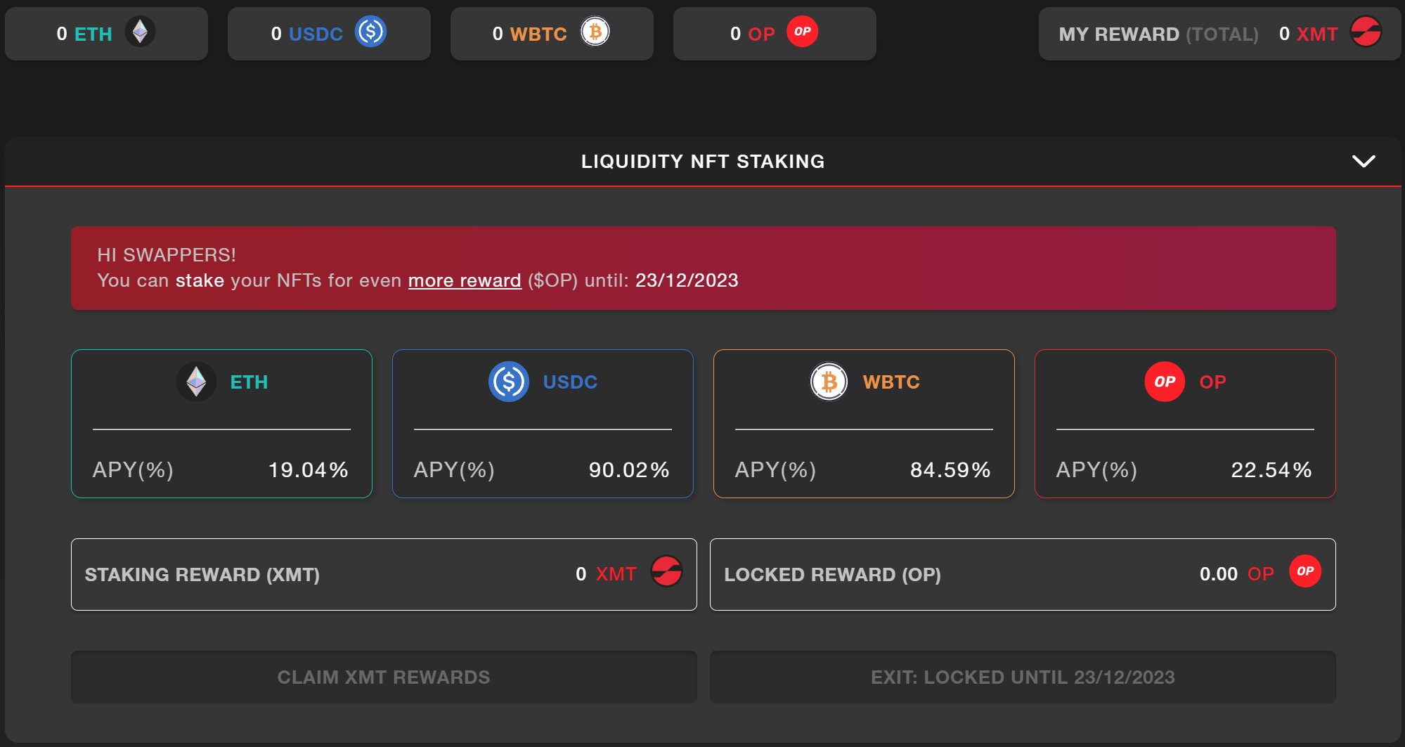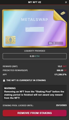 Thanks to the Cycle11 OP Grant winning, MetalSwap has a new juicy opportunity that arrives with Optimism's Layer-2 integration – the NFT Liquidity Providing OP Reward for staked position.