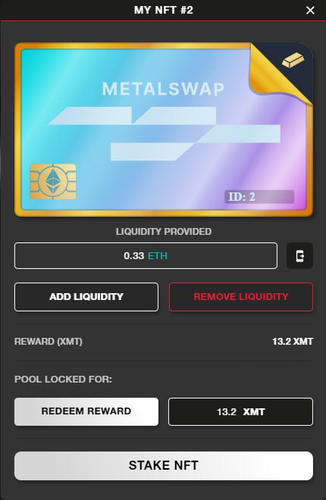 This NFTs is representing the liquidity locked in MetalSwap’s platform and will collect rewards over time.