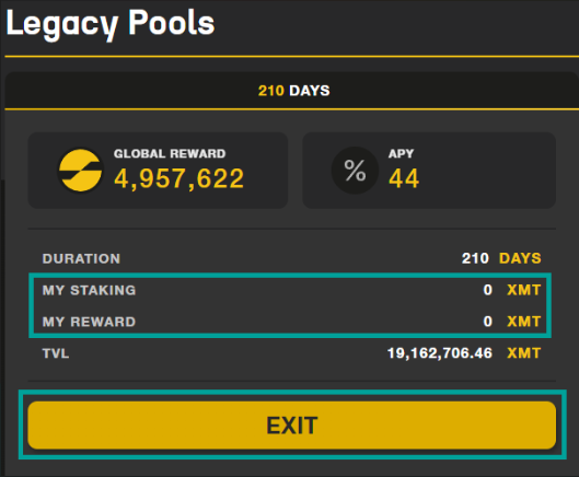 How to EXIT from $XMT Legacy Staking pools with funds and rewards