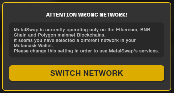 Click on "Switch network" on Metamask and "Connect Wallet".