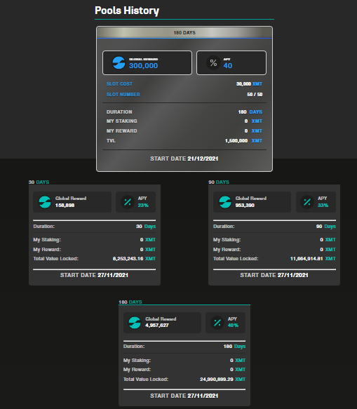 In the History menu is possible to see the all the details of the ended pools historical data of the chosen Chain.