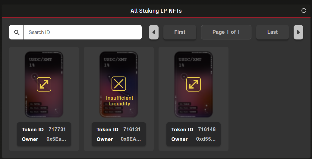 - In order to be staked the NFT must at least represent 101 USDC or 5001 XMT of liquidity